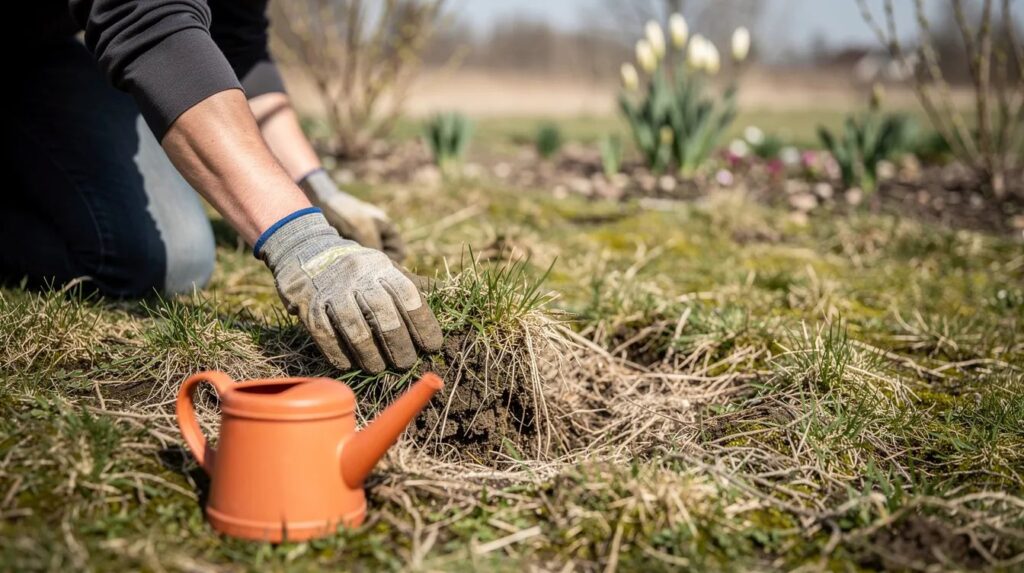 Prima di qualsiasi operazione, è importante valutare attentamente lo stato del prato esistente. Se le zone vuote o degradate occupano meno del 40–50% della superficie totale, è sufficiente la sovrasemina, cioè l'aggiunta di nuovi semi sopra il manto esistente senza eliminare completamente l'erba residua. Invece, se il prato è compromesso oltre questa soglia, con terreno compatto, muschio dominante e erba praticamente assente, la strada più efficace è la risemina completa, che prevede la rimozione dell'esistente e una preparazione più approfondita del suolo. In entrambi i casi, metà marzo offre condizioni ottimali: il terreno ha perso la rigidità invernale ma non è ancora seccato dalle prime ondate di calore. Toccare il suolo a mano aiuta a capire: deve essere umido in profondità, non fangoso né polveroso.
